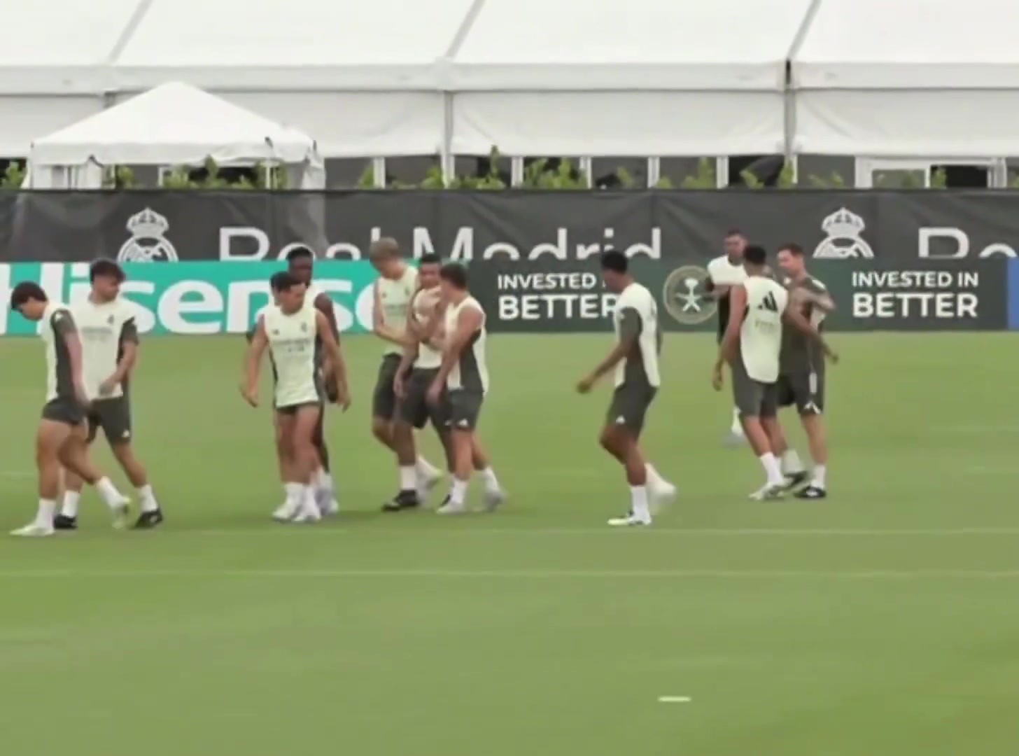像个老大哥皇马球员训练怀森比其他皇马球员高个头