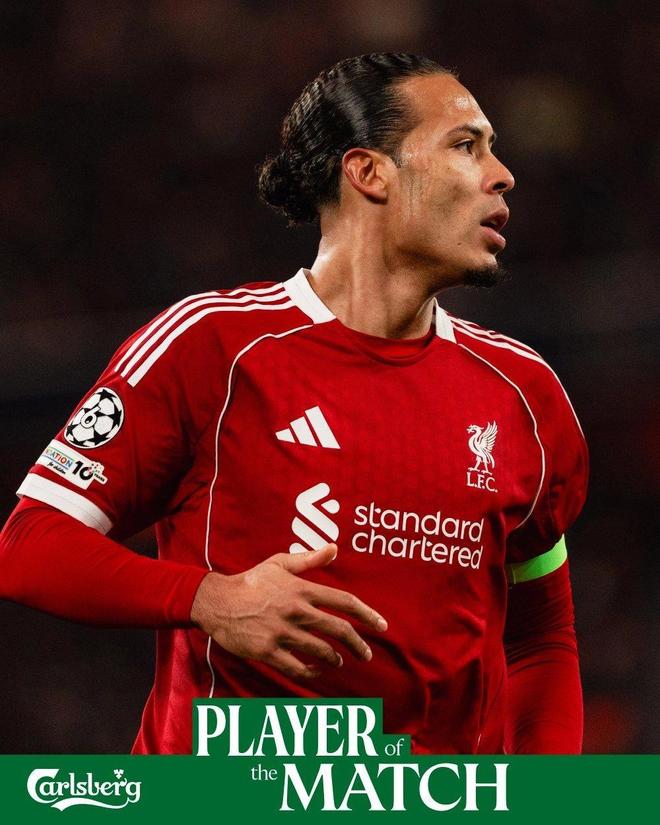 助攻帽子戏法,范戴克当选与卡拉巴赫一役利物浦队内最佳球员