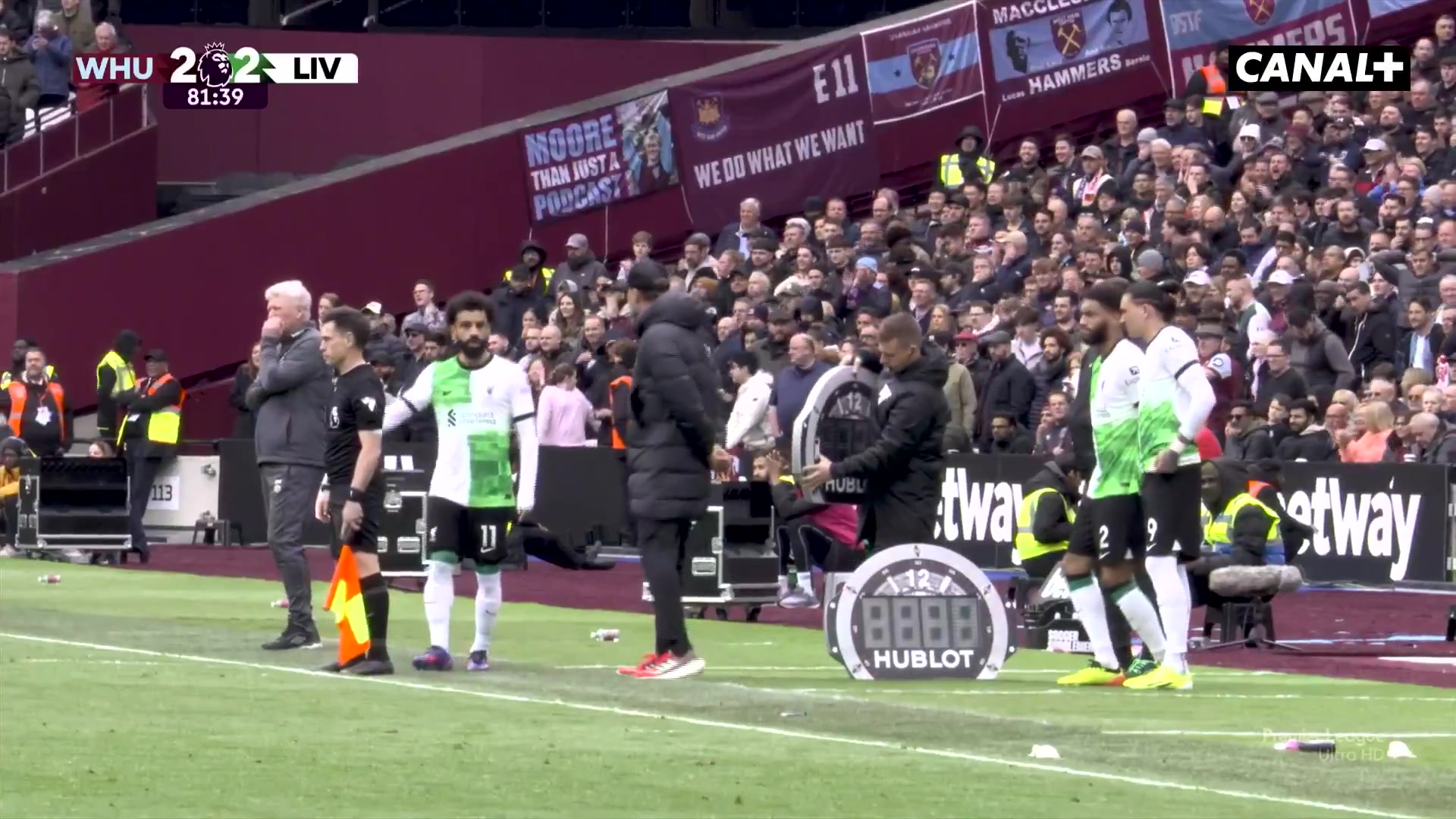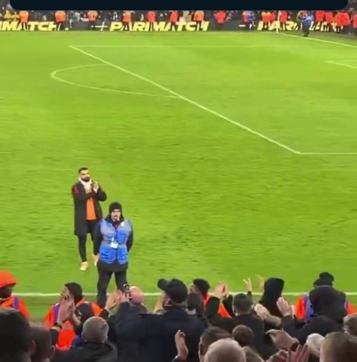 球迷近景实拍终场哨响后萨拉赫向利物浦球迷致谢