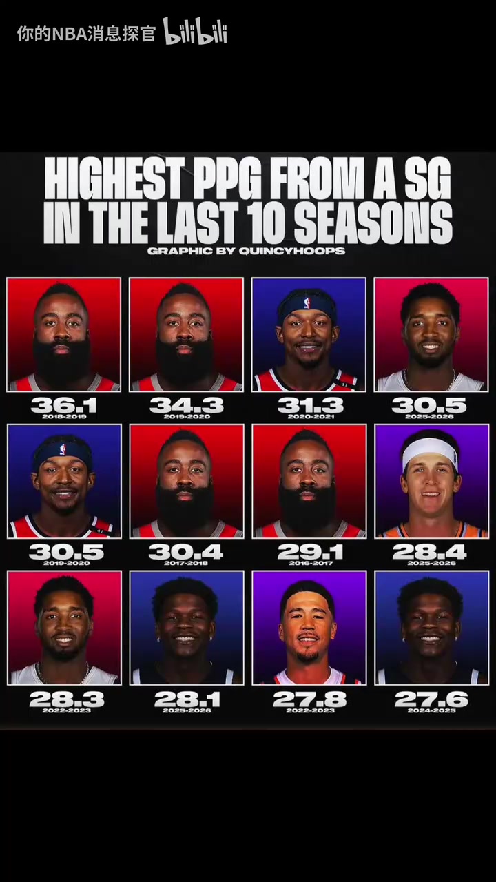哈登独占四席过去十年