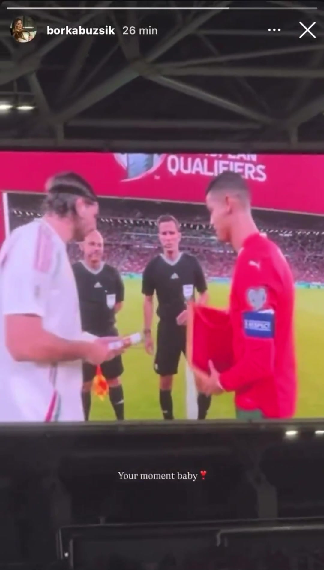 索博斯洛伊老婆拍下索博向C罗打招呼属于你的时刻宝贝